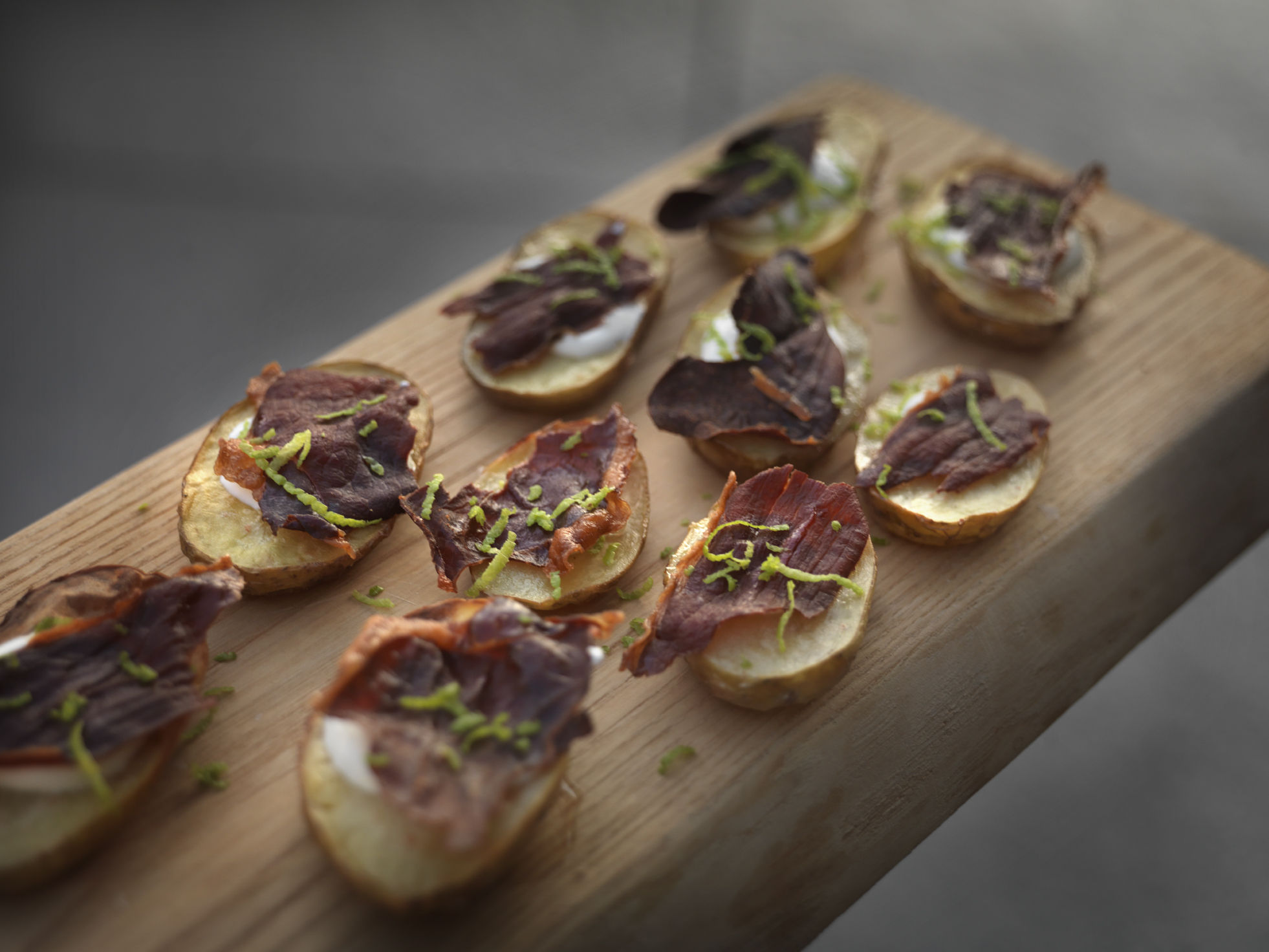 - Lägg på de torkade parmaskinkbitarna