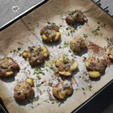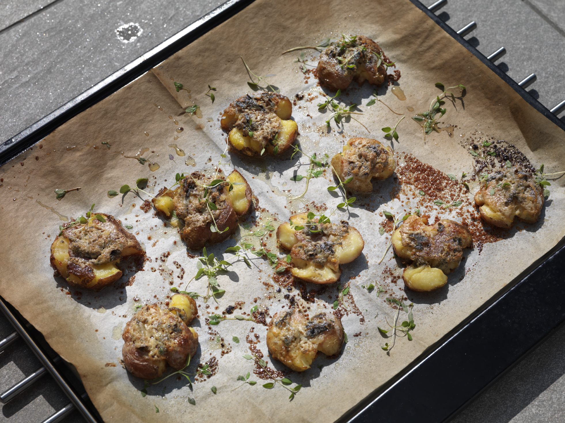 • Platta till potatisen med en stekspade, potatisen ska fortfarande hålla ihop