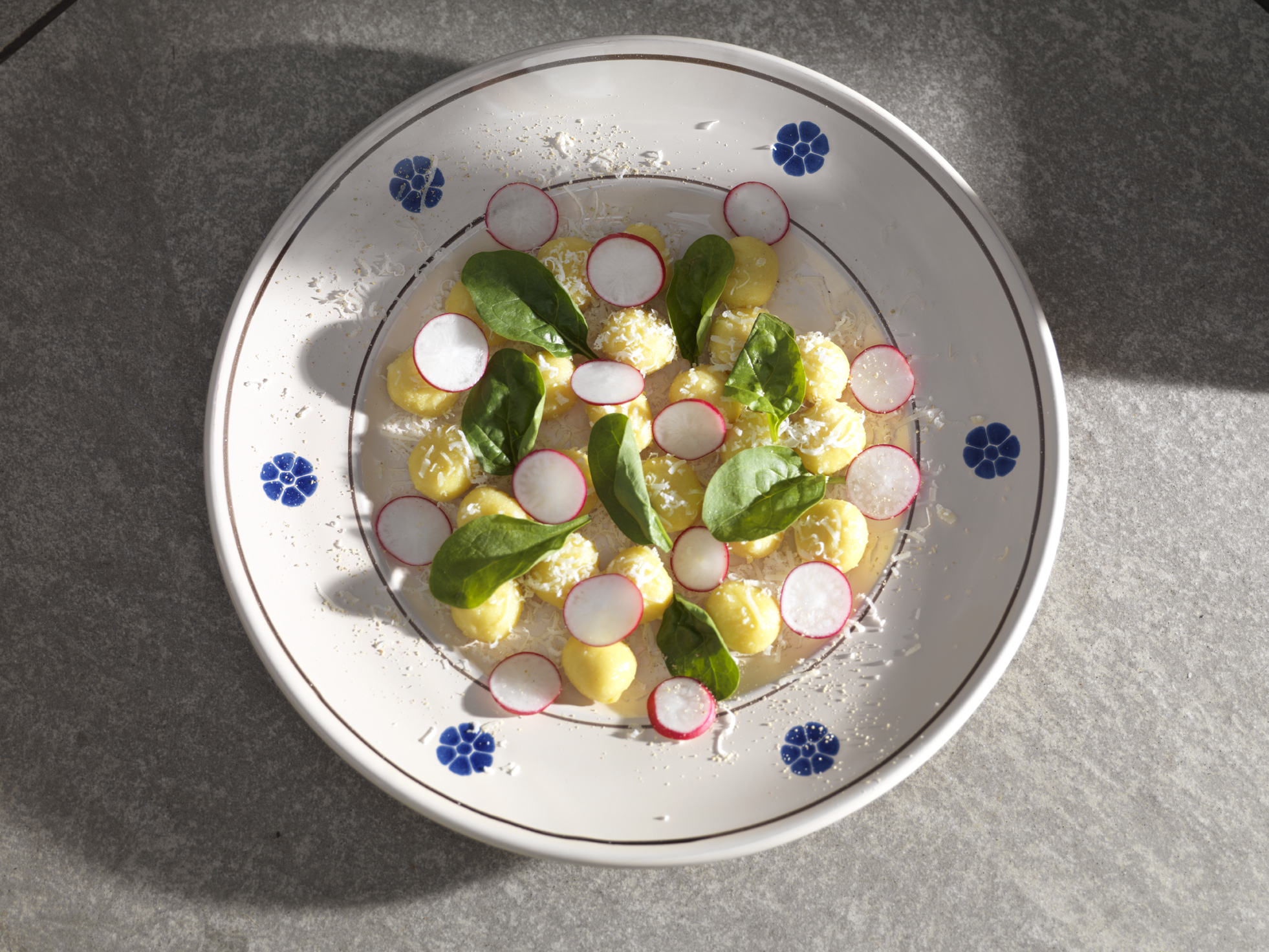 - Lägg upp gnocchin på tallrik och riv ganska rikligt med ost över